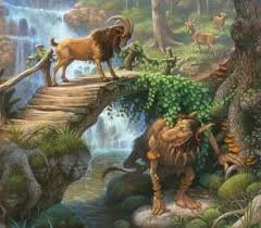Consider the picture of the Christian idea of the lion and the lamb - the symbol of God living together with the innocence/ignorance of humans. In other words, our own consciousness living in harmony with even the youngest most innocent part of ourselves. This is really just the same symbolism as the troll living under the bridge of transformation in the story of the Three Billy Goats Gruff, in the beautiful countryside of Norway, where the fairy tale originated. Each age must be in relationship with the troll of shame and fear that lurks beneath every transformation, change and move we make in life. When we think about symbols and metaphors, it is not the image or object but the meaning and principle behind them that is trying to be conveyed, in the every day experiences of human beings.